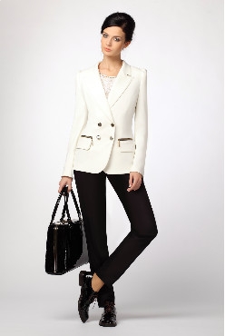 Нарядный стильный костюм тройка . Жакет удлиненный с большими лацканами, рукавами со складками и застежкой на четыре, которые дополняют отделочные молнии над клапанами.